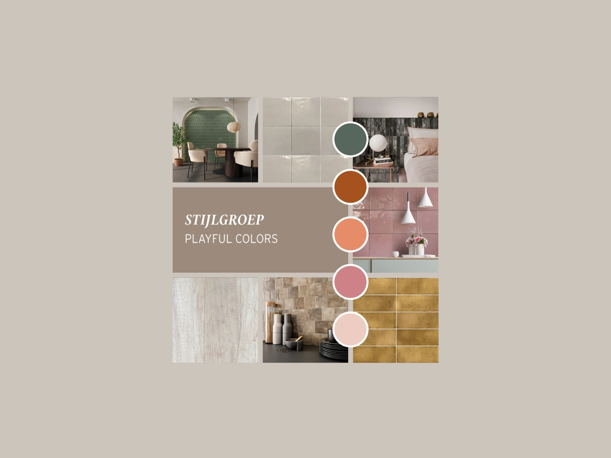Met Playful Colors transformeer je je muren en vloeren in een levendige en vrolijke omgeving. De trend van vandaag is om te mixen en matchen; de Playful Colors collectie gaat uitstekend samen met andere stijlgroepen. Dit creëert een unieke en persoonlijke uitstraling die een extra dimensie aan jouw ruimte toevoegt. Laat je creativiteit de vrije loop met decoratieve wandtegels en design wandtegels, van gedurfde tinten zoals goud en roze tot meer ingetogen kleuren.